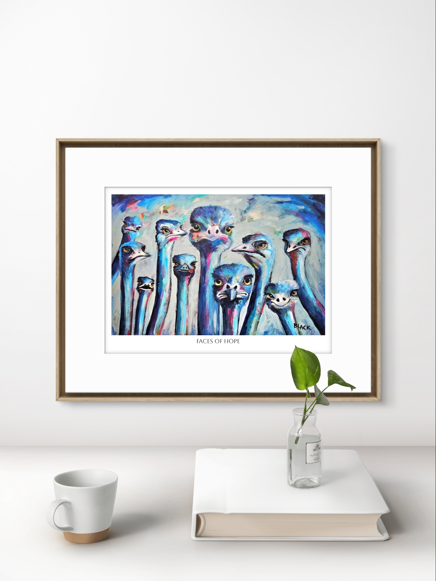 Each ostrich face is an expression of hope reminding us that we are all connected, and that kindness and empathy can reach across species and hearts alike.
